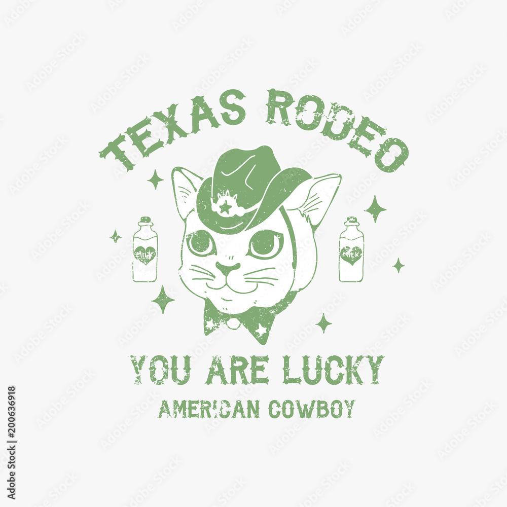 Texas Rodeo You Are Lucky American Cowboy Slogan Cat In The Hat Rock And Roll Patch Typography Graphic Print Fashion Drawing For T Shirts Vector Stickers Print Patches Vintage Stock Vector Adobe Stock